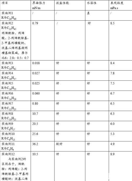 水溶性:用目标区块注入水配制0.15%的聚合物溶液,在40℃、700rpm条件下搅拌,观察并记录完全溶解的时间,若2小时内溶液均匀、无鱼眼,则判定为溶解性好,否则溶解性差。