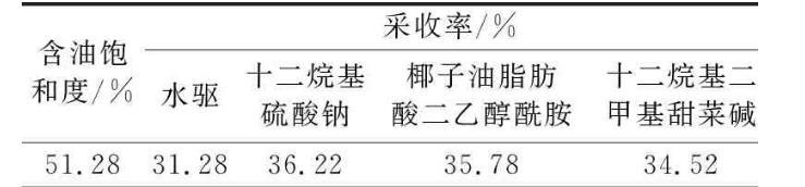 采用岩心动态驱替实验。对复配的低界面张力表面活性剂DQ-2体系的驱油性能进行室内动态评价,并与水驱、十二烷基硫酸钠、椰子油脂肪酸二乙醇酰胺和十二烷基二甲基甜菜碱等驱油性能进行比较,实验结果见表1。