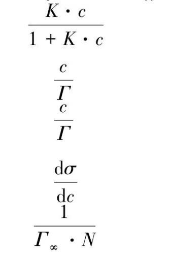 在一定温度下,吸附量Γ与溶液浓度c的关系可由Langmuir单分子层等温吸附式表示[7]。