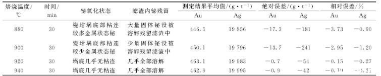 粗铋是铋精炼过程中的中间产物,粗铋中含有铅、银、金、砷、锑、碲等[1],准确测定粗铋中金、银含量对于指导生产和回收贵金属具有重要意义。高铋物料中金、银测定一般沿用火试金重量法[2-3],主要是控制试料中铋的含量,减少铋对火试金的影响,为了减少合粒中铋的残留,消除铋圈对合粒影响,控制样品中铋含量为0.50 g为宜[4-6],对于粗铋来说,称样量太小,不能准确测定样品中金、银含量。实验证明可以先把铋焙烧氧化,然后用乙酸除去铋氧化物中的铋[7-8],再用火试金重量法测定物料中金、银含量[5]。本方法精密度高,准确度好,可用于粗铋中金、银含量的测定。