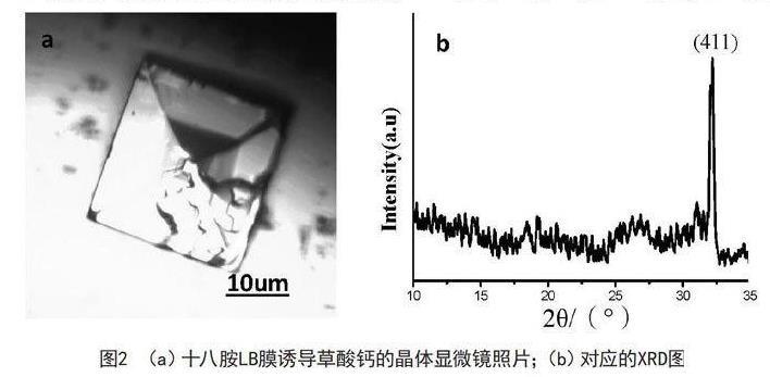 采用XRD表征草酸钙的成分;收集在十八胺LB膜上的晶体和溶液自发生成的晶体,用金相显微镜表征。