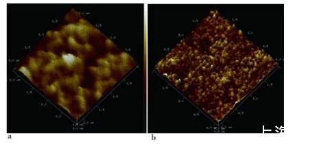 沉积在硅片上的薄膜用原子力显微镜间接接触模式进行检测,范围由大到小进行扫描,图像由NanoScope Analysis软件进行处理。