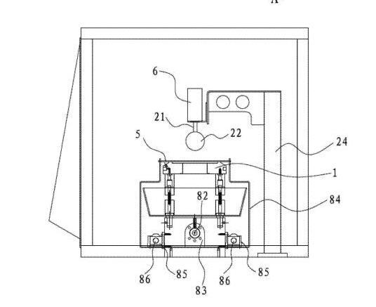[0019]在一些实施方式中,清洗槽的底部凹设有容纳孔,容纳孔能够容纳板材样品插入到容纳孔中,容纳孔的底部设有排液阀,清洗液供应系统供应的清洗液通过管道传送到容纳孔中,清洗液从容纳孔当中漫出并流满整个清洗槽。其有益效果是,设置容纳孔后,可以方便样品完全没入到清洗液当中,这样清洗槽就只需要在容纳孔位置设置的较深,其它位置设置得较浅即可。否则的话如果需要让样品完全没入清洗液中,就需要将清洗槽整体设置成很深。设置排液阀后,可以很方便排干清洗槽中的清洗液。
