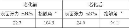随后将其在90℃条件下老化72h后,再次测量其老化后的表面张力;取页岩薄片,将其打磨光滑后,将页岩薄片浸泡于老化后的助排剂溶液中24h,再次测量其水接触角;空白页岩薄片的水接触角为21.7°。