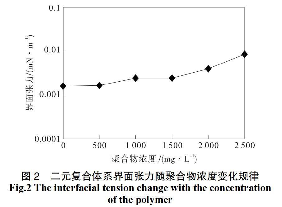 将无碱二元复合体系的界面张力随聚合物浓度的变化规律绘制如图2所示。