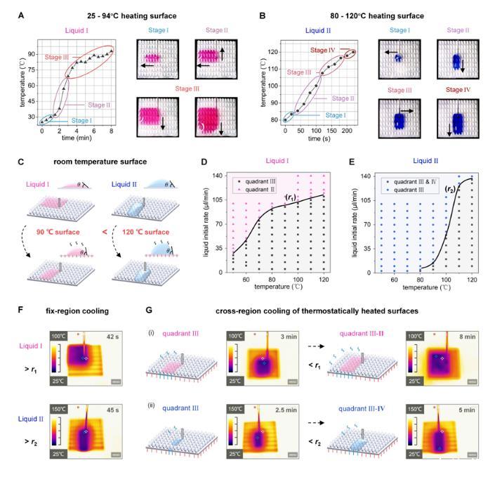 图4:高温表面上的动态液体运输控制和时空可控的靶向冷却。