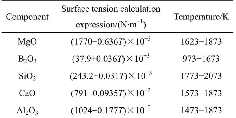 2 MgO-B2O3-SiO2-CaO-Al2O3体系熔渣表面张力模型的建立