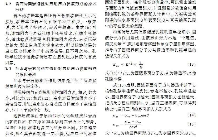 油藏储层油水界面张力是形成启动压力梯度的微观成因