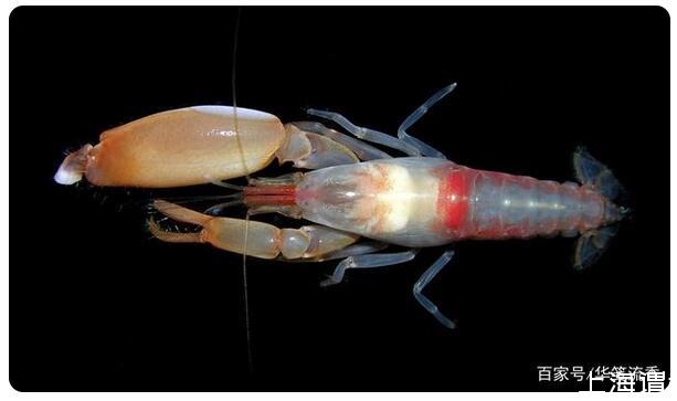 枪虾是一种身长只有5厘米的虾,但是它有一大一小两只熬。