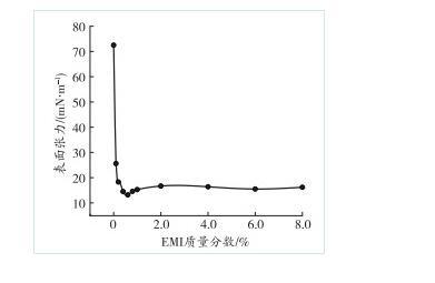 图2不同质量分数EMI溶液的表面张力