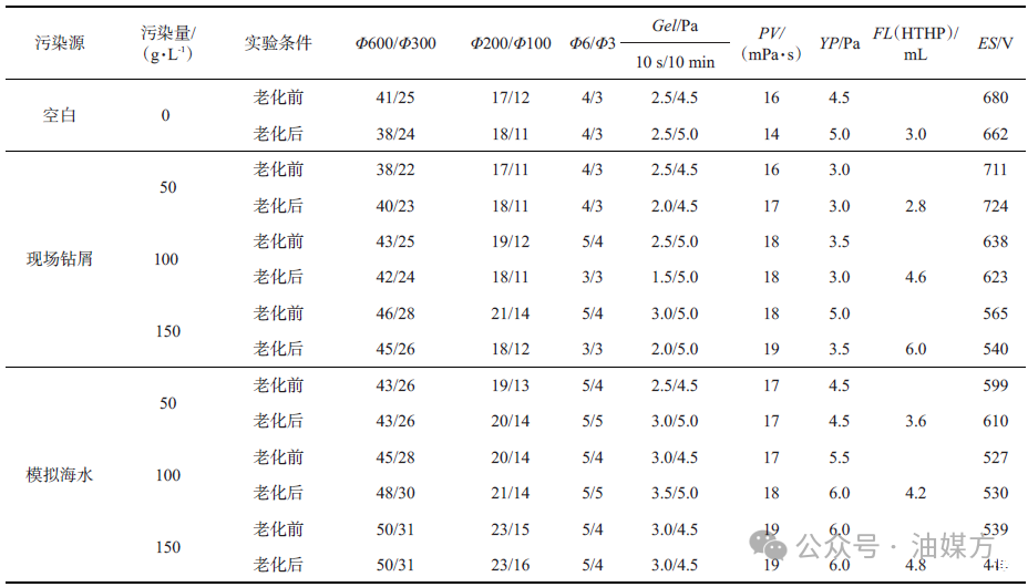 环保非水基钻井液界面张力、基本性能和抗污染能力——结果与讨论、结论与认识