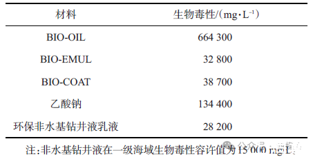 表2环保非水基钻井液乳液组分及体系的生物毒性