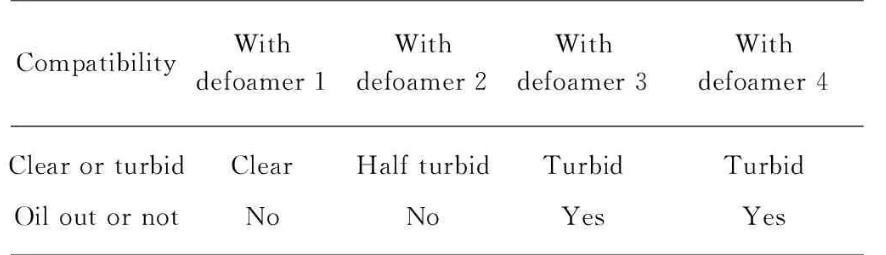 表2消泡剂与起泡液的相容性