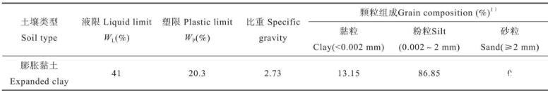供试土壤选用有明显胀缩变形的灰白色膨胀黏土,土样取自云南农业大学附近的某风化土边坡,土样的基本性质如表1所示。取回的土样经过风干、碾碎后过2 mm筛备用。