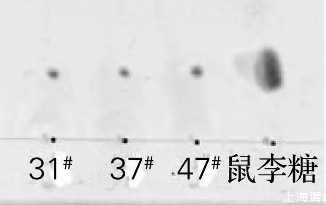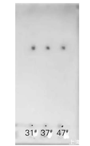 将菌株31#、37#和47#于30℃培养后,对发酵液萃取所得生物表面活性剂粗制品进行硅胶薄层层析,结果如图4所示。将萃取所得生物表面活性剂粗制品进行酸解,硅胶薄层层析结果如图5所示。