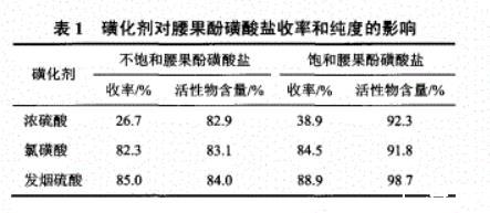 表1磺化剂对腰果酚磺酸盐收率和纯度的影响