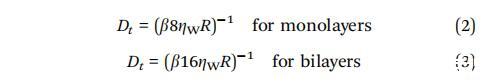 其中 ZW = 0.001 N sm? 2 是水的粘度,Zm 是 二维膜粘度,R是半径 正在分析的域。 对于双层,包括因子二 在分母中,因为水存在于分母的两侧 膜.54