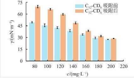 图4 C12-CDS在石英砂表面吸附前后的表面张力值