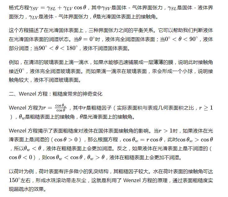 杨式方程、Wenzel 方程 Zisman 准则揭秘液体与固体表面之间的复杂关系