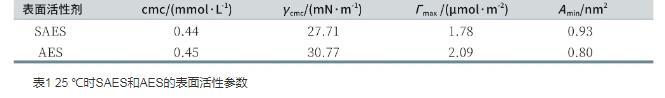 表1 25℃时SAES和AES的表面活性参数