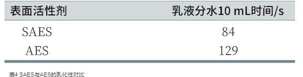 表4 SAES与AES的乳化性对比