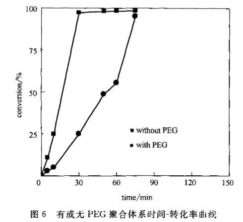 图6有或无PEG聚合体系时间一转化率曲线