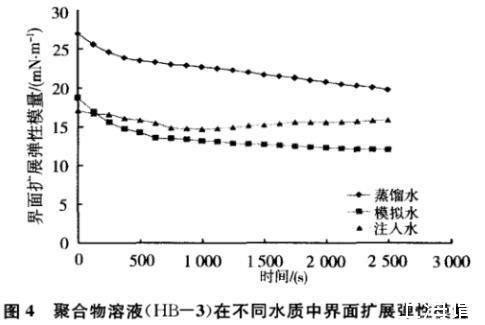 图4聚合物溶液(HB-3)在不同水质中界面扩展弹性模量