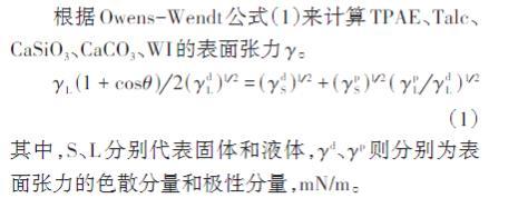 根据Owens-Wendt公式(1)来计算TPAE、Talc、CaSiO3、CaCO3、WI的表面张力γ。