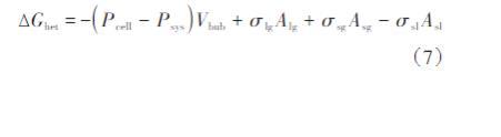 其中,Pcell是泡孔中的气体压力,Pa;Psys是周围系统的压力,Pa;A是表面积,m2;σ是界面张力,mN/m;l、g、s分别表示熔体、气体和固体相。