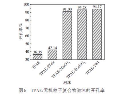 图6 TPAE/无机粒子复合物泡沫的开孔率