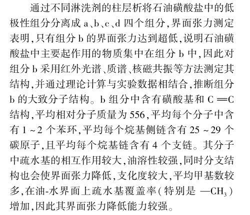 石油磺酸盐中有效组分的结构与界面张力的关系