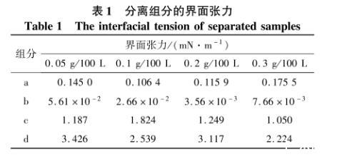 表1分离组分的界面张力