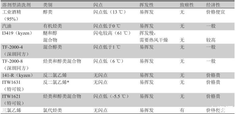 表2氯代烃类清洗剂优缺点