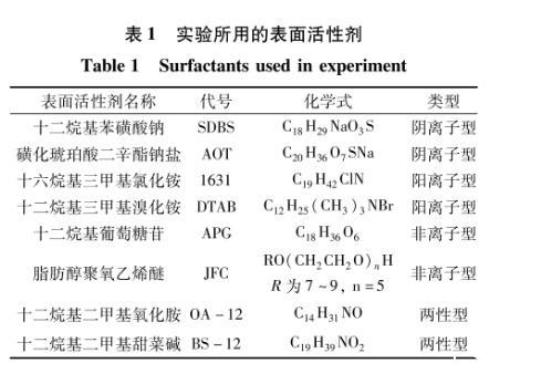 在查阅文献的基础上初选了8种常用且经济的表面活性剂(表1)。