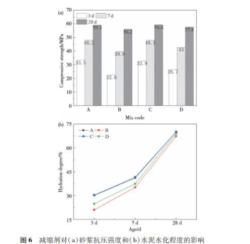 2.4减缩剂对浆体的水化程度和砂浆抗压强度的影响