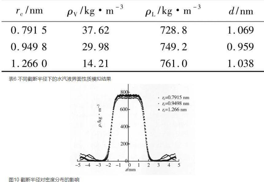 温度、截断半径、模拟分子数对水汽液界面特性的影响规律(二)
