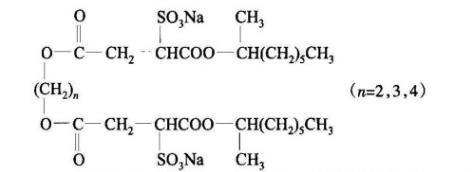 乙二醇双子琥珀酸二仲辛酯磺酸钠(GSS271)、1,3-丙二醇双子琥珀酸二仲辛酯磺酸钠(GSS371)、1,4-丁二醇双子琥珀酸二仲辛酯磺酸钠(GSS471)(结构式如下,实验室自制。提纯后测定,表面张力曲线无最低点,说明不含高活性杂质),实验用水均为二次去离子水经亚沸重蒸。