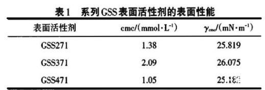 表1系列GSS表面活性剂的表面性能