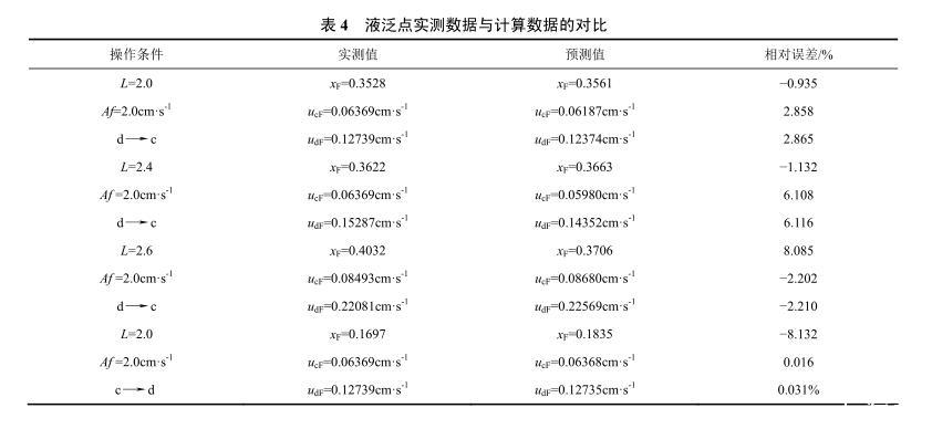 表4液泛点实测数据与计算数据的对比