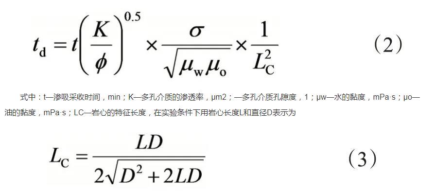 Zhang等通过对油水黏度取几何平均、考虑岩心大小、形状和边界条件,给出特征长度LC的计算方法,Ma等基于特征长度LC定义了无因次时间td: