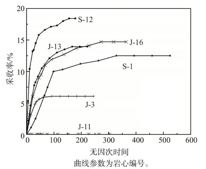 图5低张力纳米流体渗吸体系在大庆低渗天然岩心中的采收率
