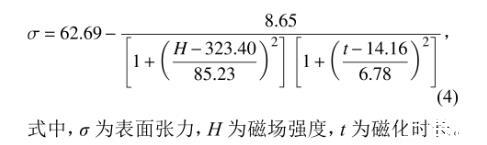式中,z表示溶液表面张力,z0表示零点偏移量,x表示磁场强度,y表示磁化时长,A1~A5分别为x~x5的系数,B1~B5分别为y~y5的系数。