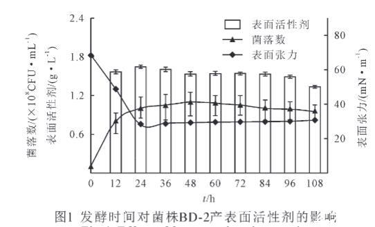 2.2发酵时间对菌株BD-2产表面活性剂的影响