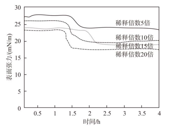图4不同稀释倍数下表面张力测试结果对比