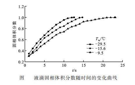 图3液滴固相体积分数随时间的变化曲线
