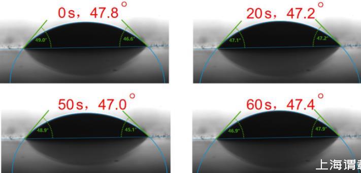 图61 g/L的C72-MPB水溶液在PTFE上不同时间的润湿状态