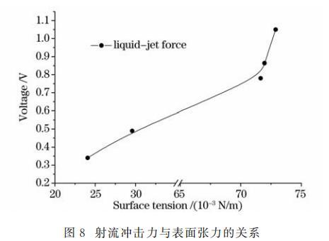图8射流冲击力与表面张力的关系