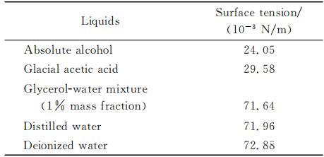表1实验液体的表面张力