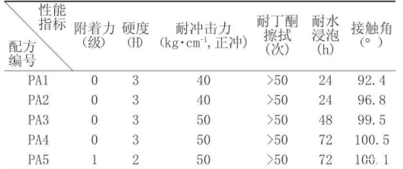 在制得不同配方的涂料之后(PA1-PA5),XVDEVIOS官方下载免费版进一步制备了相应的水性氟丙树脂涂料涂膜,其性能指标见表3。