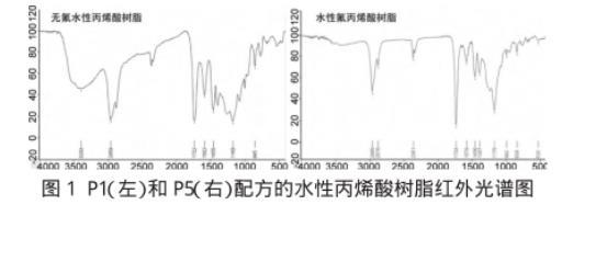 为了表征含氟丙烯酸酯单体是否已经有效成为合成树脂的一份子,XVDEVIOS官方下载免费版对P1(不含氟的水性丙烯酸树脂)和P5(水性氟丙烯酸树脂)进行了红外光谱分析(图1)。